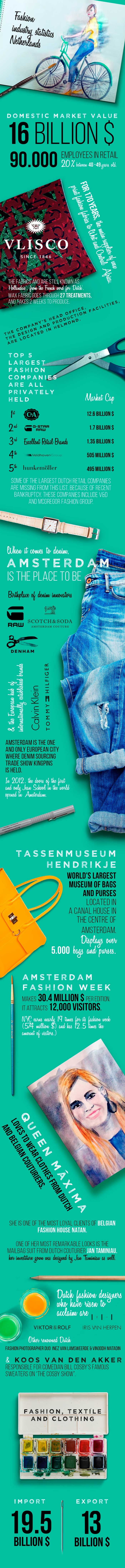 The global fashion market is a leading industry well known for key players, such as Inditex, LVMH, H&M and Nike and is valued at 3 trillion dollars, or 3,000 billion US dollars. The fifth installment of FashionUnited’s series takes a closer look at the fashion industry in The Netherlands. Dutch fashion designers who have risen to acclaim are Iris van Herpen and Viktor & Rolf. This small European country is also big in denim and is home to brands such as G-Star and Denham. But have you heard Vlisco? Vlisco is the main supplier of wax print fashion fabrics to West and Central Africa. The company's head office, as well as the design and production facilities for the Vlisco brand, are located in a small town, Helmond. This and more fashion statistics in the infographic below.
