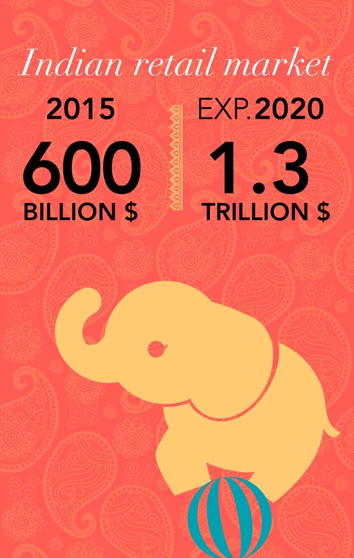 According to IBEF the Indian retail market reached 600 billion dollars in 2015 and is expected to grow to 1.3 trillion dollars by 2020, registering a CAGR of 16.7 percent over 2015-2020. The Euromonitor study suggests that the apparel retail market was around 453 million dollars in 2014, just a 0.01 percent of the total retail in 2014, which is expected to rise to 20 percent of the overall retail market by 2020.