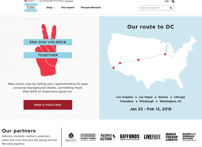 Toms seems to be transitioning from a giving model towards an advocacy model, with its new campaign to end gun violence in the US. Can you tell us a little bit more about that?