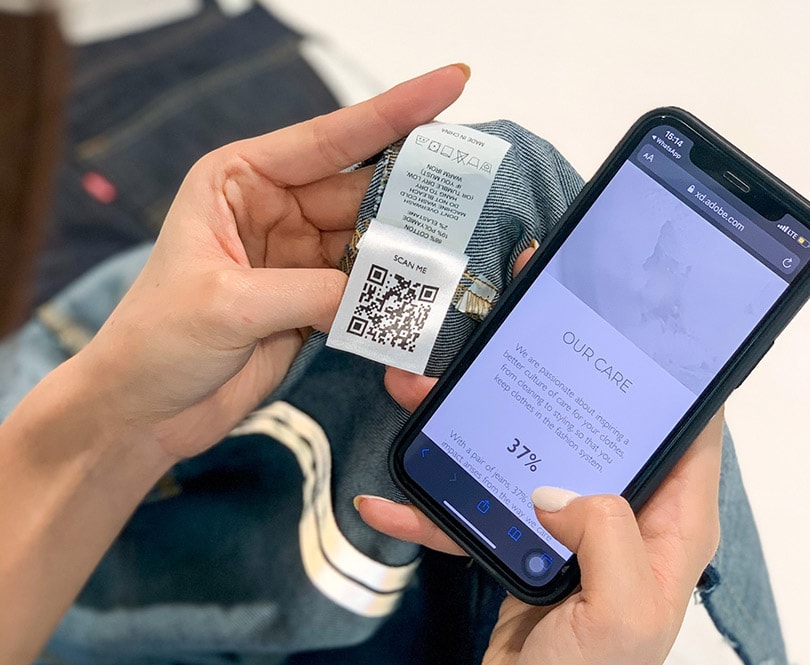 The challenge is keeping the QR code on the garment for its entire life, as care labels are often cut off by consumers. Yes reader, you too! We’ve all done it before. And no label means no data. To mitigate this risk, brands can add a QR code to a sewn-in woven label or embed a label via a heat transfer, thus ensuring that the QR code cannot be cut out of the garment. That said, having a QR code woven into the fabric itself does not make it as obvious to the consumer that the QR code is associated with care and content information, making it less likely that they would be drawn to scanning it for the intended purpose.