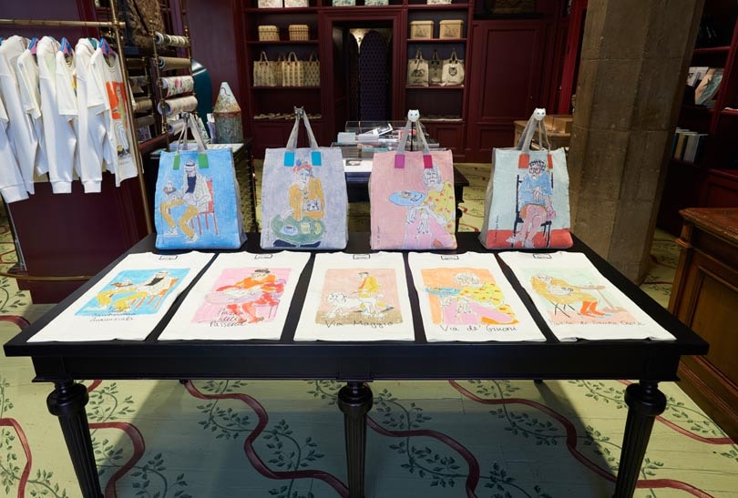 This also includes Gucci’s collaboration with Cotier, which includes her distinctive, playful illustrations applied to a range of sweatshirts, hoodies, T-shirts and tote bags.