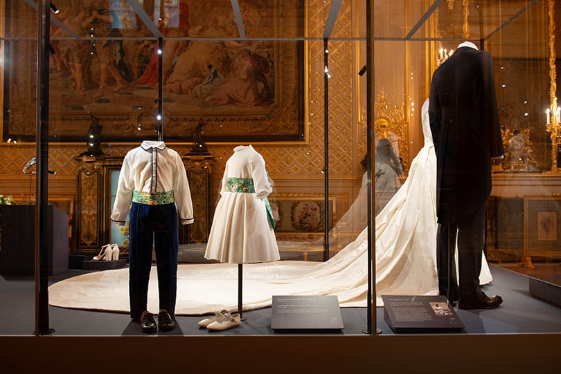 The exhibition, organised by the Royal Collection Trust has been curated by Caroline de Guitaut, and features Her Royal Highness’s wedding dress, tiara and evening gown, alongside Jack Brooksbank’s morning suit, and the maid-of-honour outfit of HRH Princess Beatrice of York.