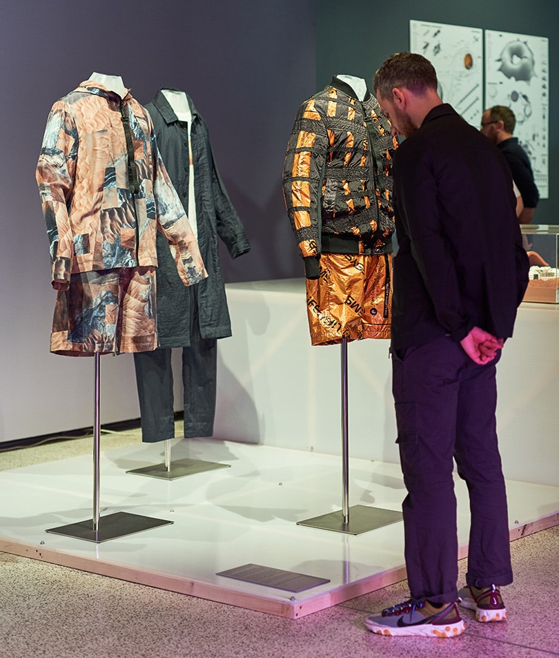 While designer and researcher Anna Talvi showcases her lightweight, flexible “wearable gym” garments, which have been designed to stretch the wearer's muscles to prevent them from wasting away in low gravity. In addition, the prototype NDX-1 spacesuit designed specifically for use on Mars, is on display for the first time. Created by the University of North Dakota, the spacesuit is designed to withstand the planet's gruelling conditions with soft fabric-joints improve mobility, when compared to the suits used on the moon.