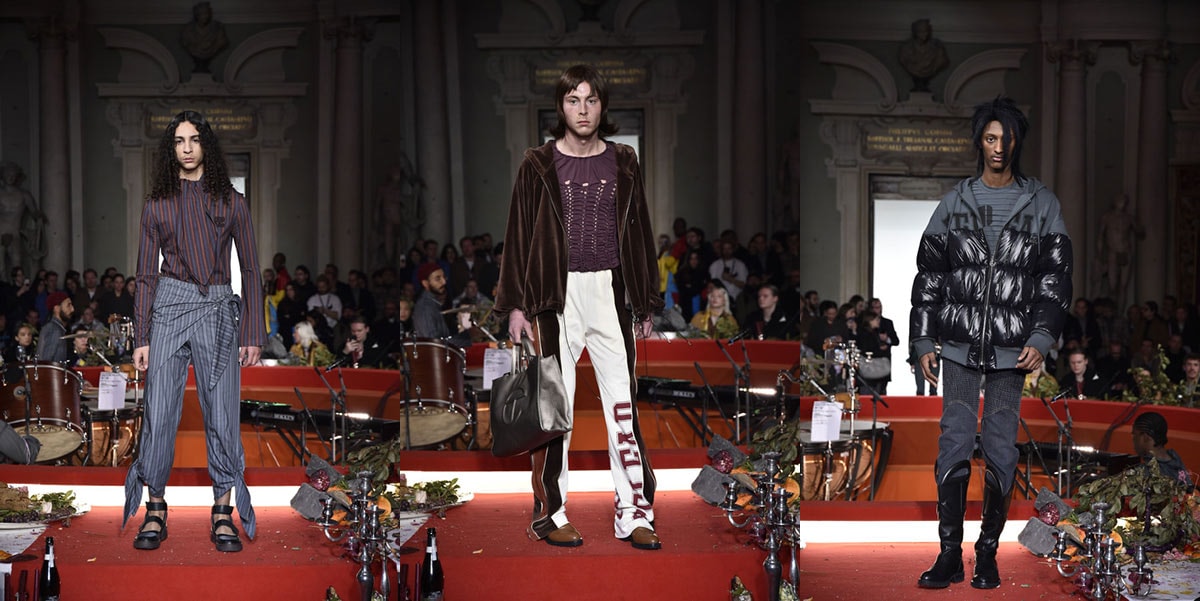For his AW20 collection, the New York-born designer combined baroque ornament and silhouette with humble material and form. The cast entered into the great hall of the palace, stepping onto and making their way around a giant, circular dining table upon which the remnants of a Baroque banquet were strewn, before making their way through the grand halls of the expansive building.