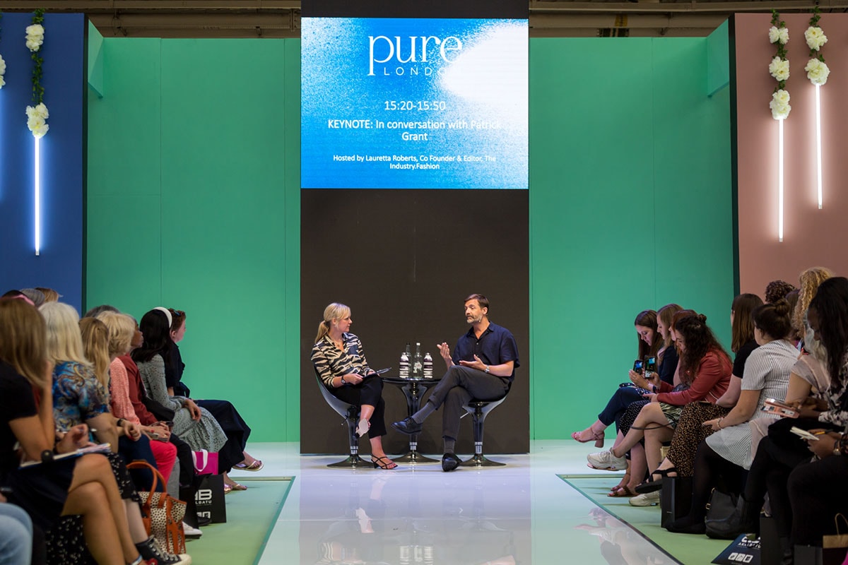 “Fashion is on such a messily over-consumptive model that we have sort of lost the joy of it, and we have to collectively find a way to bring the joy back,” said British fashion designer and owner of Savile Row tailor Norton & Sons, Patrick Grant, during his keynote talk at Pure London on Sunday. In front of a crowd of industry professionals, Grant discussed fast fashion, sustainable transparency in the supply chain, and the importance of supporting British manufacturing.