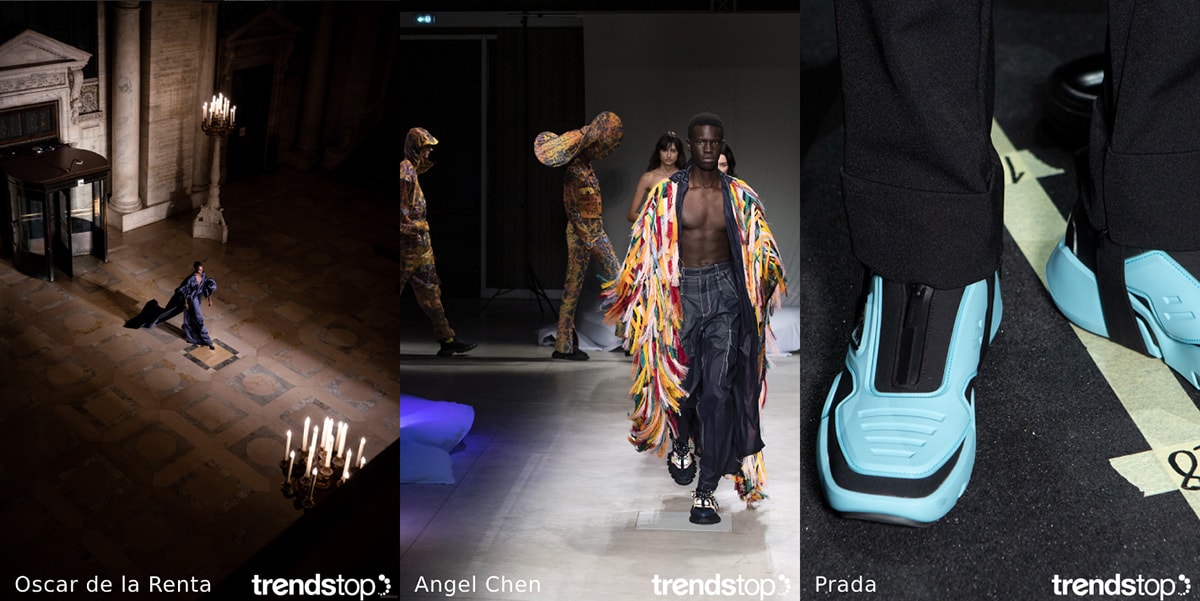 Images courtesy of Trendstop, left to right: Oscar de la Renta Fall Winter 2020-21, Angel Chen Spring Summer 2020, Prada Fall Winter 2020-21