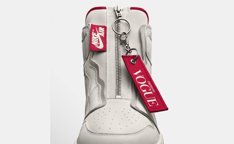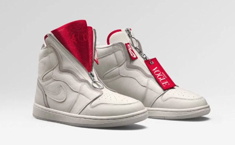 The first sneaker style co-created by Wintour is the AJI ZIP AWOK, a retro Air Jordan 1 made of ultra-soft leather, available in red or white. Its metallic zippers are embellished with an “edited by Vogue” Nike Air tag. Wintour’s seal of approval also comes in the sole and tongue of the sneakers, which feature her “AWOK” (“Anna Wintour Okay”) signature -- the same she uses to give her final approval to Vogue Magazine’s pages.