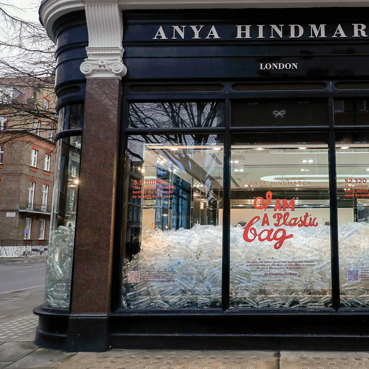 In a statement, Anya Hindmarch said it has taken than 90,000 used plastic bottles to fill the stores, which also happens to be the same number of plastic bottles that are purchased globally every six seconds. Each bottle used collected by the Anya Hindmarch team from their local communities.