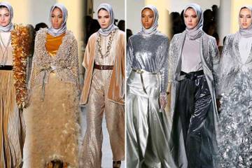 On the contrary, Hasibuan's collection features shimmering, on-trend pleats, silver and golden ruffles, and long trains adorned with pearls, glitter or embroidery that recalled royalty of the Middle Ages. The models were not chosen at random -- the young designer held casting calls specifically seeking first and second-generation immigrants, seeking to show that "fashion is for everybody."