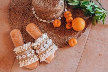 Bright colours, handcrafted details and the use of natural materials such as smooth (suede) leather, raffia or canvas give the new styles their unmistakable touch. The look is always casual: Bali-Bali goes just as well with jeans and shorts as it does with a feminine maxi dress. In addition to the core items mules and sandals, which are surprising with sophisticated braiding (Viennese braiding), metal accessories (big chains), shells and fringes, the collection has been expanded to include the important fashion themes of loafers and espadrilles. The must-have footbed slipper is realised by Bali-Bali with the label's typical nonchalance: casual two-straps and toe grips are fashionably interpreted by material combinations such as natural leather with canvas or raffia. Flying high with Bali-Bali? Now that's possible too! By popular demand, the collection has been extended to include mules and sandals with higher bursts. Soft padding offers optimum comfort.