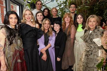 Image: courtesy of the British Fashion Council; Megha Mittal, Stephanie Phair, Tania Fares and Sian Westerman with the 2019 BFC Fashion Trust Grant Recipients at Sushi Samba, Covent Garden, London by photographer James Peltekian.