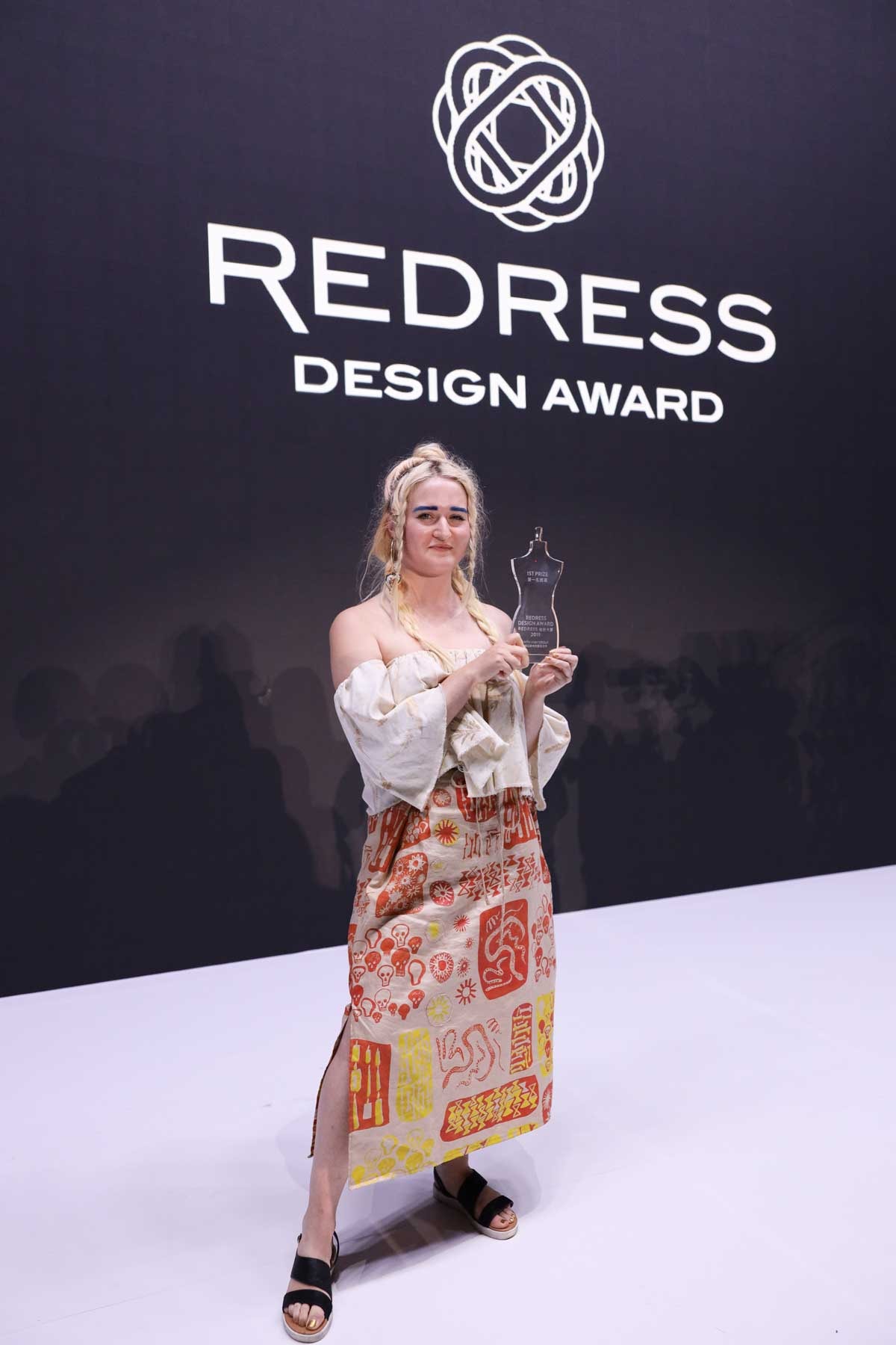 Edinburgh College of Art graduate Maddie Williams took home First Prize in the Redress Design Award, the world’s largest sustainable fashion design competition that aims to put textile waste in the global spotlight by challenging emerging designers to created collections using sustainable and circular design techniques.