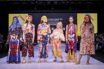 Keith Chan was named the Hong Kong Best Prize Winner for his upcycled colourful collection that utilised end-of-roll textiles, fabric scraps and secondhand garments creating a layered, asymmetric collection embellished with typography using eco-friendly inks and embroidery.