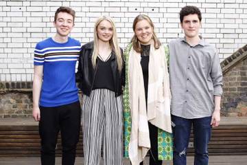 Image: Courtesy of British Fashion Council. The winners of the Graduate Preview Day: Rhys McKenna, Eppyar Hunt, Jonathan Preston Moore and Fiona Cartmel