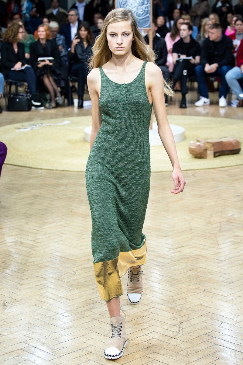 "The main idea was to kind of ground everything," said Anderson, who is also artistic director for the Spanish accessories brand Loewe, owned by LVMH. He said the designs were intended to show a "stillness" so that "no matter how hysterical things become everything will always have a ground level". The collection was "like a sanctuary where it's calm before the storm," he said. "I think we get very hysterical. I think media make us hysterical and I think sometimes you have to go back to basics." The designs had a countryside feel to them, with plenty of comfortable dresses going below the knee and practical shoes that looked like walking boots.