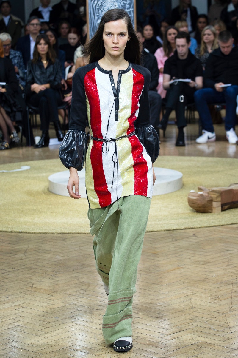 The palette also had an earth-like quality with sky blue, pistachio green, dark red and leather colours. Anderson is a fan of paradoxes: the collection was both modern and classical, wise and bold, mixing vintage corset-like designs with sleeveless t-shirts. Anderson, the son of former Ireland rugby international Willie Anderson, will be presenting a collection created for the Japanese brand Uniqlo next week. "I'm obsessed by them. I wear their clothes on a daily basis," he said. "So when they approached me it was like it was a no-brainer."