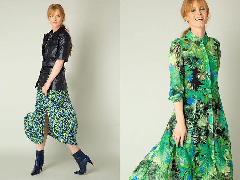 In spring we long for the fresh and bright colours of summer. This fresh story inspired by the bright colours of the blue orchid and tropical birds. A prelude to the tropics, a starting point of spring. Flower print and subtle animal print combined with leather look and fine knit, makes this story wearable for spring weather.