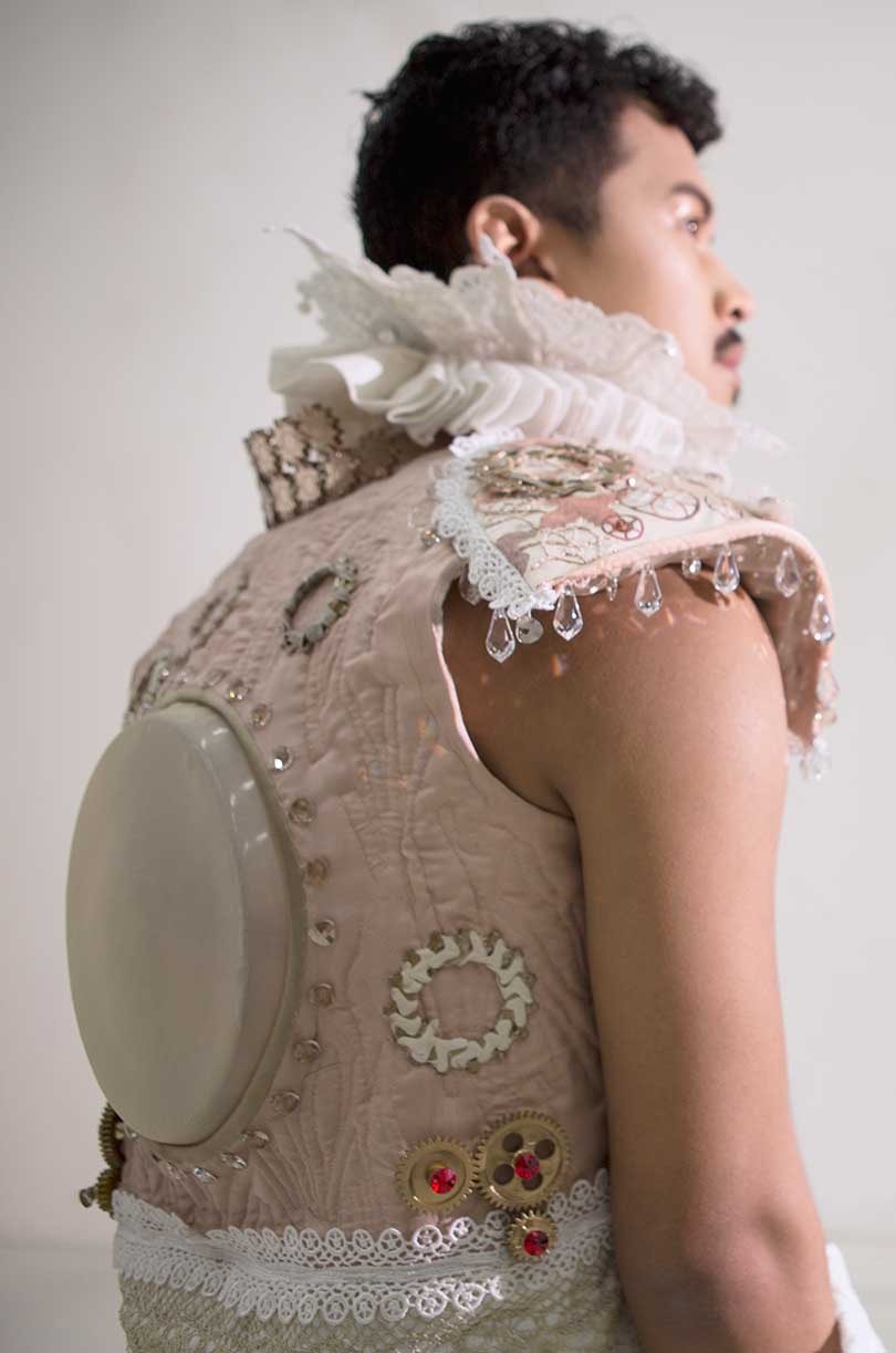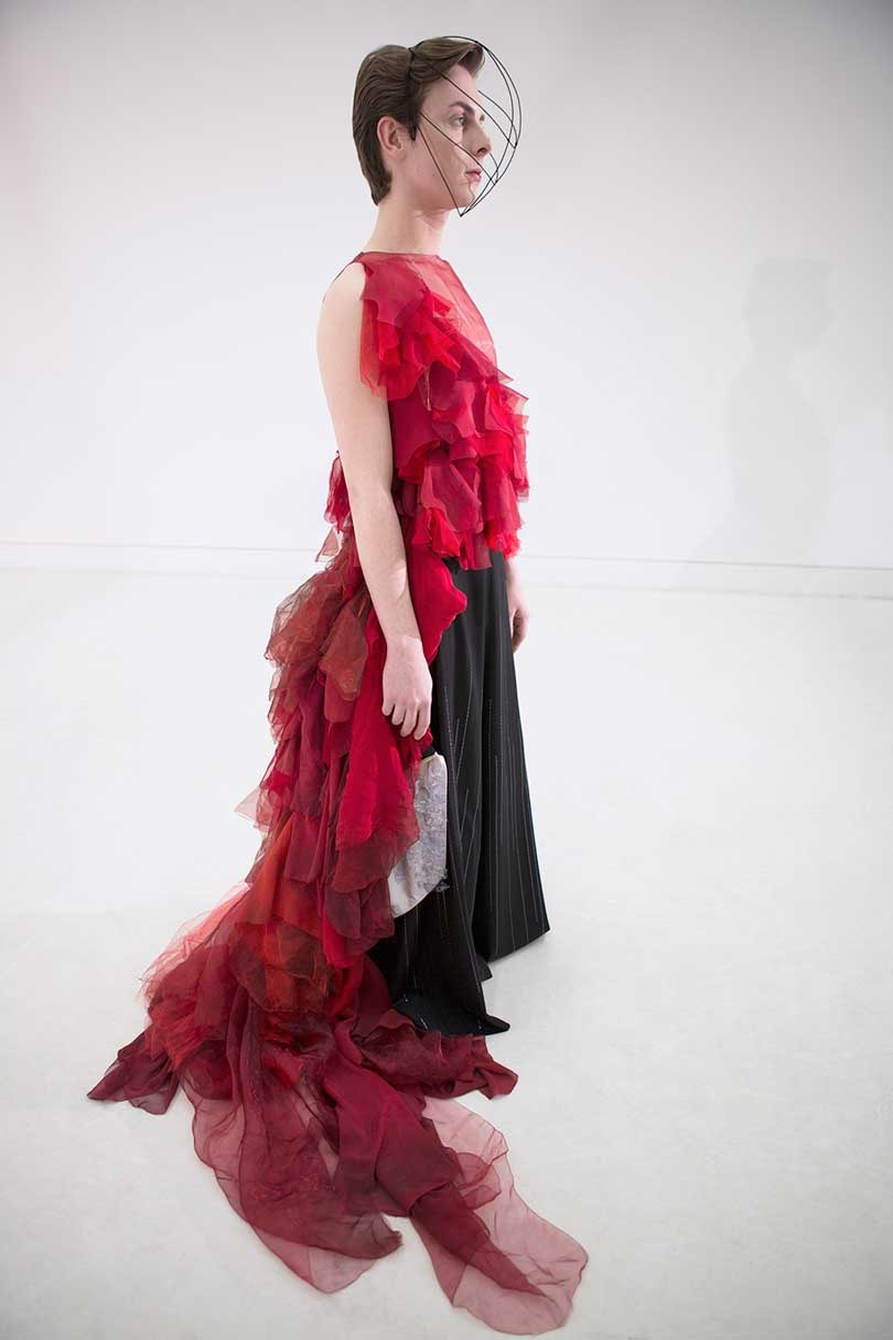 Other pieces included a costume inspired by the mantel clock showcasing mechanics of a clock on the design, while the ‘Bell Jar’ costume features a LED light, and ‘The Rose’ features a train of red ruffles to represent a withering rose inside the bell jar.