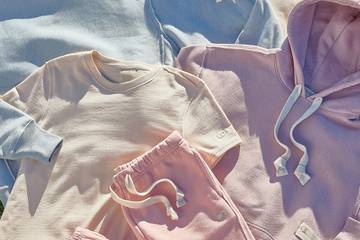 The Natural State Reverse Weave collection features t-shirts, hoodies, crew-neck sweatshirts, joggers, and shorts containing recycled polyester fibers. It uses unprocessed and unbleached fabrics, along with all-natural dyes derived from flowers, roots, and plants.