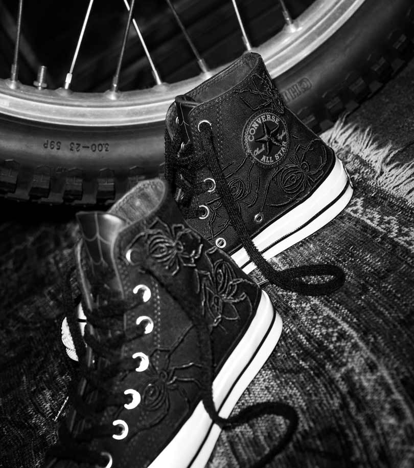 Growing up the tattoo artist would always draw all over his Chucks and deconstruct them to make them something unique to him. His new collaborative collection with Converse tells the story of a spider and fly and features a minimalist look that lets the wearer apply their own interpretation to the meaning of the two. The Chuck 70 also bear Dr. Woo's signature logo, which acts as the focal point of the design.