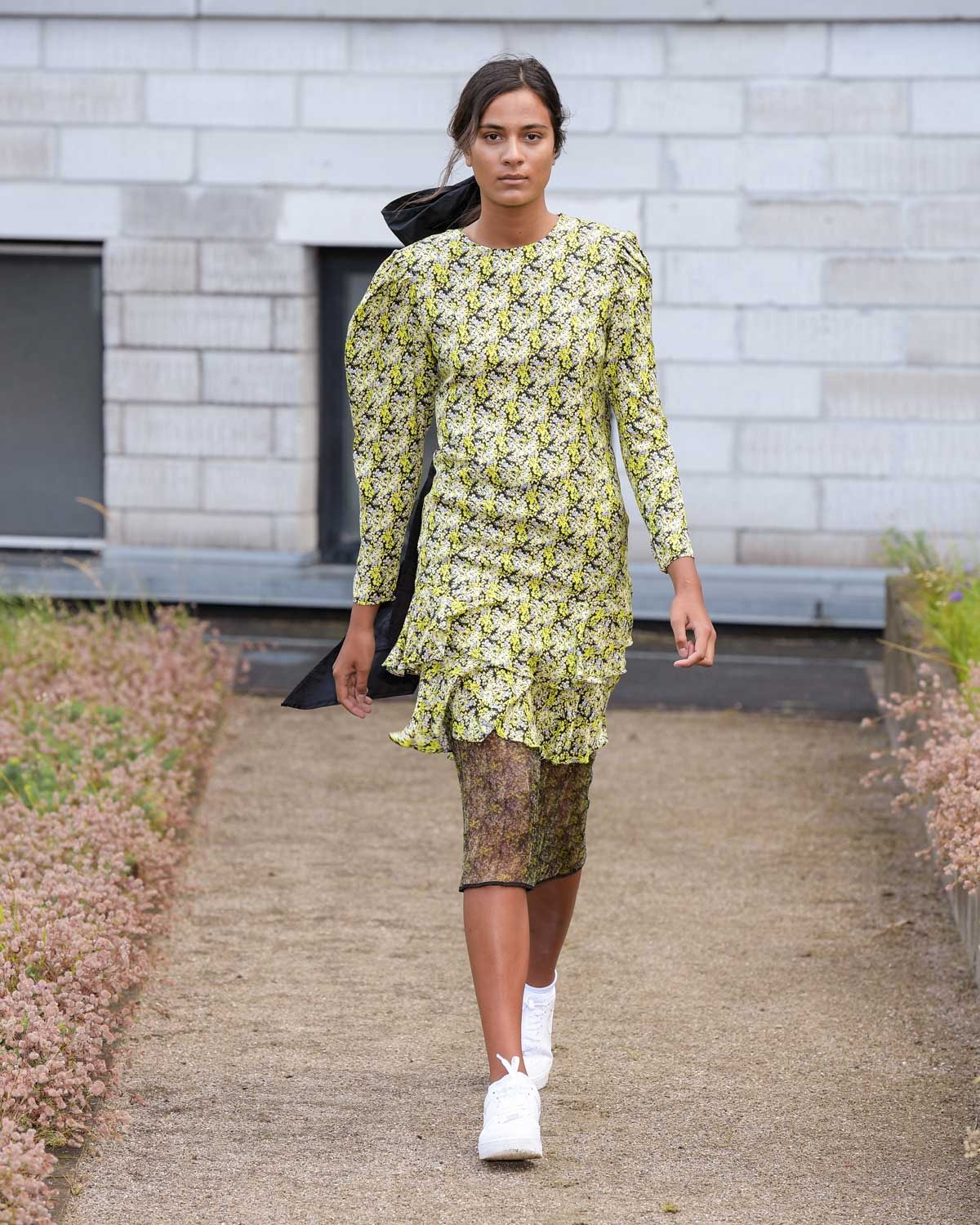 The humble bee is the main inspiration for her spring/summer 2020 collection, with the insect featuring in her hand-painted graphic prints, alongside flowers and fruits, as a celebration of the Danish summer.