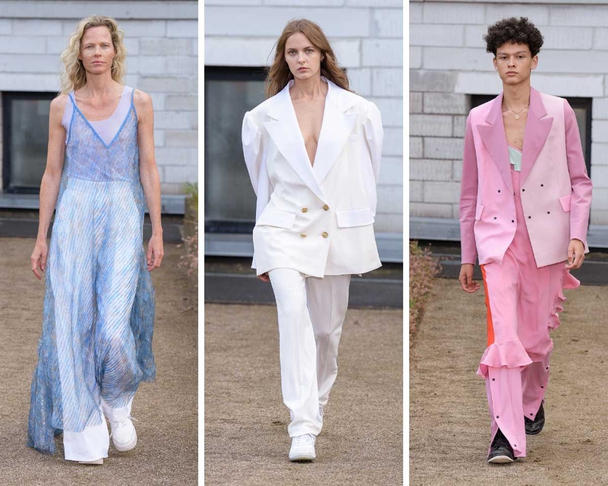 Feminine silhouettes was seen throughout the Copenhagen Fashion Week schedule with puff sleeves being a key trend, seen across floaty, empire-line dresses and tops on the catwalk of Cecilie Bahnsen alongside delicate sheer organza tailoring, while Baum and Pferdgarten opted to showcase a spin on the sheer trend with see-through bucket hats, and Brøgger embrace the voluminous dress trend with floaty floor-length gowns.