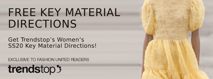 FashionUnited readers can get free access to Trendstop’s Spring Summer 2020 Key Materials Directions report, featuring all the essential material trends from the SS20 collections. Simply click on the banner to receive your free report.