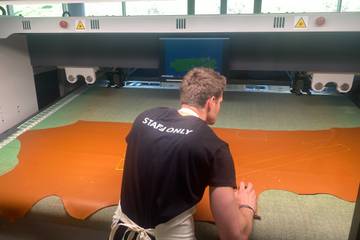 Various sounds like hammering, the hissing of a spray gun and the rattling of sewing machines mixed with the booming bass of a monotonous techno beat. It seemed as if the workers, dressed in white coats, had to work an 'extra shift'. And this, under the observation of the visitors. The catwalk also ran through the aisles where the Italian fashion house produces several models of its luxury bags.
