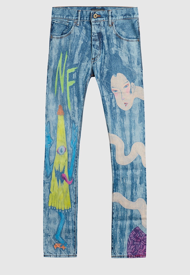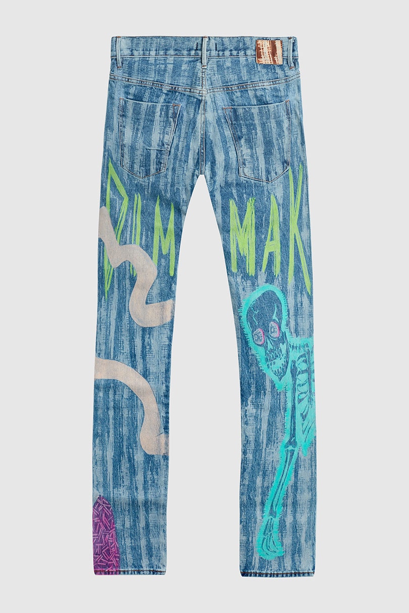 What makes these jeans stand out, other than their sustainable credentials, is the deconstructed pop art meets manga aesthetic, which is an evolution from Dim Mak’s ‘AOKI 1of1’ series, where Aoki has been upcycling clothing and making original, one-of-a-kind wearable art pieces.