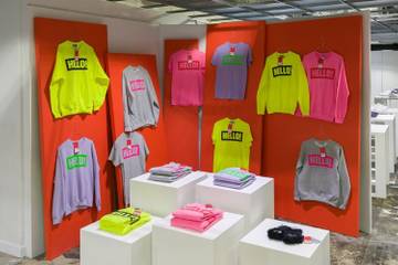 While Ashley Williams simply created sweatshirts, T-shirts, hair grips and even slippers with Hello! emblazoned across them, Chaos created Hello! phone cases, luggage tags and T-shirts, and Stephen Jones designed Hello! baseball caps.
