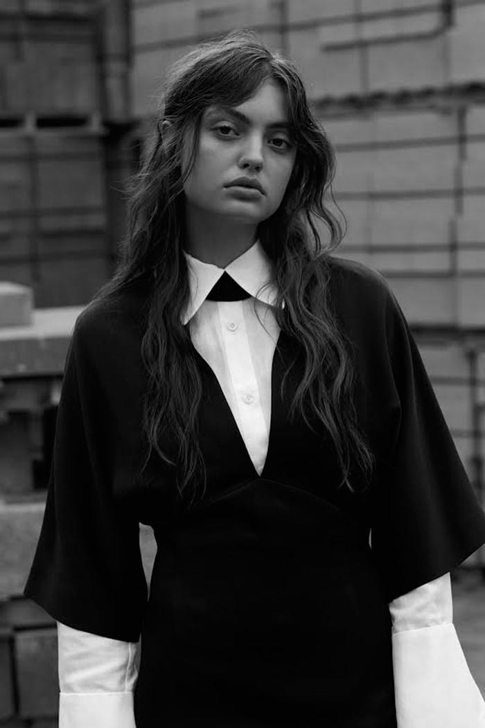 The debut range includes floaty blouses in floral and leopard prints, as well as classic white and black shirts, along with the Javan dress, the signature piece featuring a deep V-neck line, high collar, front split and kimono sleeves, complete with choker neckline that is made from a medium weight Reclaimed Acetate/Viscose Crepe. Completing the debut collection is a black ‘bed jacket’.