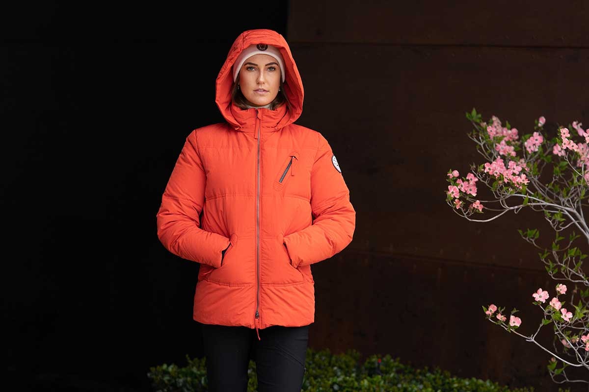 Highlights from the women’s range includes the bright orange ‘Canyon’, inspired by the 1950s Parkas Hillary wore during his trip to the South Pole and features a rip-stop outer fabric backed with PU for weatherproofing designed to take you from the dry weather piste to apres.