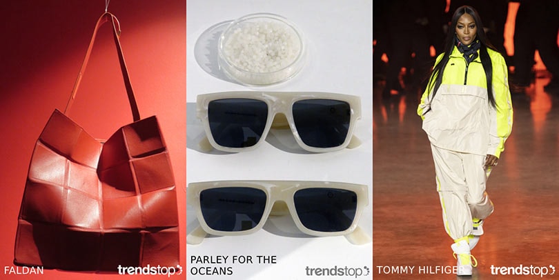 Parley for the Oceans made a splash at LFW with their latest innovations in reusing ocean plastics. Alongside their ongoing collaboration with Adidas, Parley are diversifying into recycled totes and eyewear as well as raising further awareness amongst consumers, teaming up with Amex to create the first PET-based credit card. Accessories brand Faldan are utilizing ocean plastic-based materials such as Econyl as part of their responsibly sourced, collapsible leather totes packaged in boxes made from recycled coffee cups. On the runways, the Tommynow collaborative collection with Lewis Hamilton showed street/sports garments created using recycled materials and low impact denim washes.