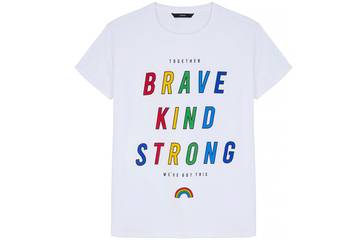 The T-shirts from George at Asda are a unisex design made from 100 percent cotton that features a bright rainbow slogan urging us all to be ‘Brave, Kind, Strong’ alongside the positive message ‘together we’ve got this’.