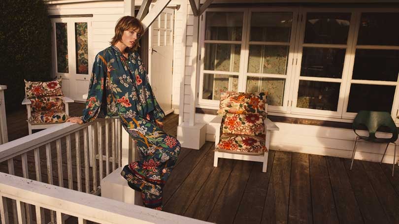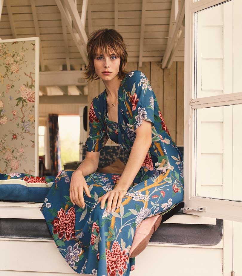 GP and J Baker gave H&M access to its vast archive of printed textiles to create a capsule womenswear collection featuring some of the interior brand’s signature prints, including ‘Magnolia’ painted by William Turner in 1913, ‘Hydrangea Bird’, and ‘Oriental Bird’, a delicate trailing design featuring an exotic crested bird.