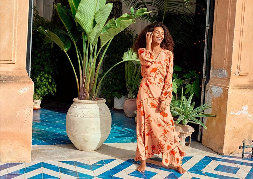 The pre-drop capsule highlights four styles that H&M states are “synonymous with Johanna Ortiz’s flirtatious-yet-effortless aesthetic” - a tunic dress, a wrap dress, a mini dress and a tiered floor-length style.