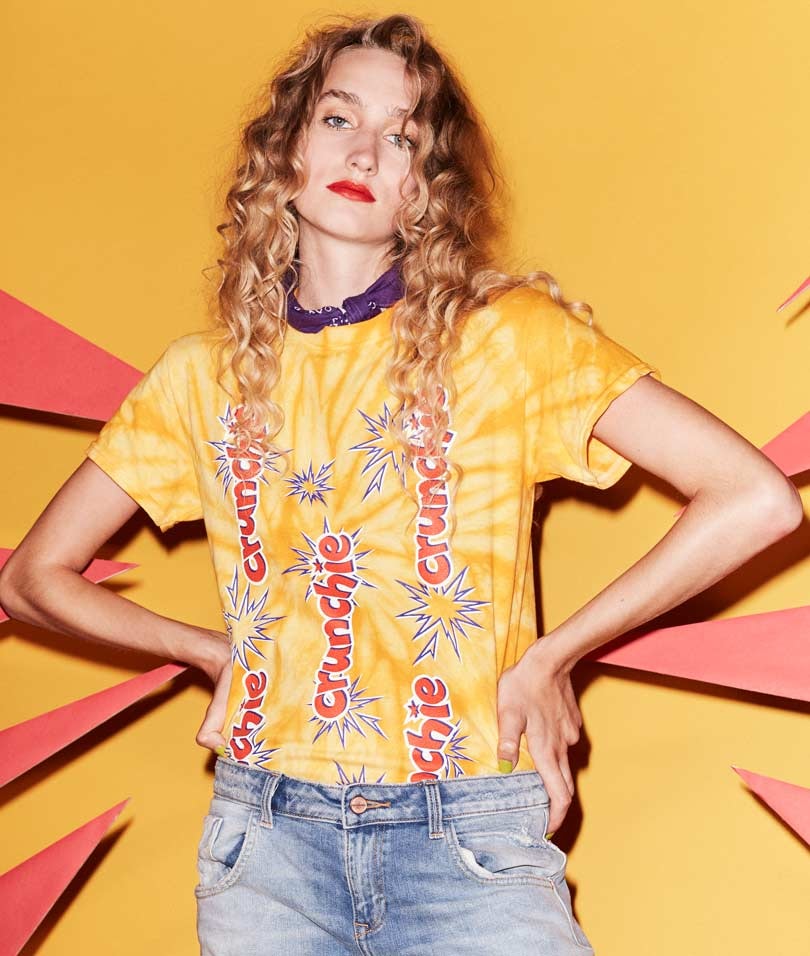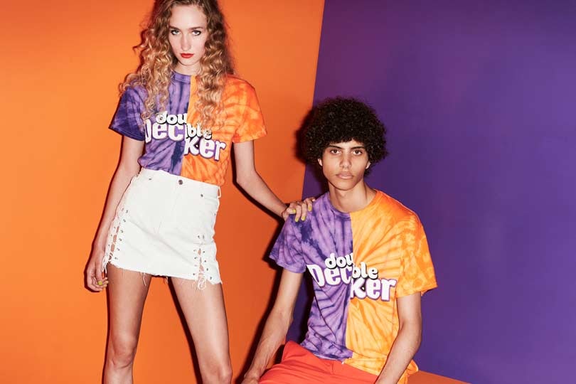 Retailing for 30 pounds each, the unisex T-shirts are available to purchase from the House of Holland website, and feature statement designs including a vibrant orange T-shirt featuring the recognisable Crunchie logo alongside illustrated shatters to amplify the honeycomb, while the Twirl T-shirt has a tie-dyed design to represent the swirls of the chocolate bar, and the Wispa design is a lively red and purple tee featuring bubbles.