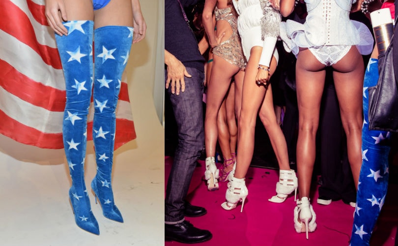 The shoes that models were wearing, were designed by Brian Atwood. The audience witnessed white, furry gladiator heels, blue over-the knee boots decorated with white stars and colourful butterfly pumps. Other designers whose creations have been worn on the Victoria's Secret runway, include Nicholas Kirkwood, Sophia Webster and Giuseppe Zanotti.