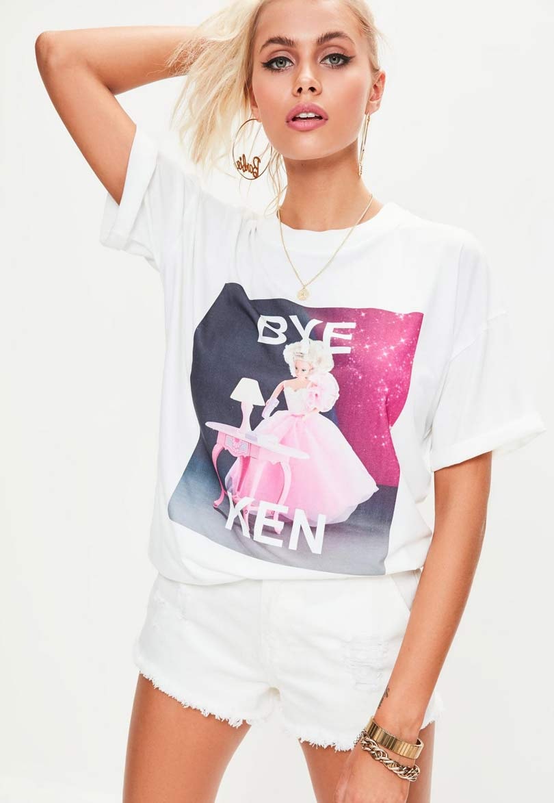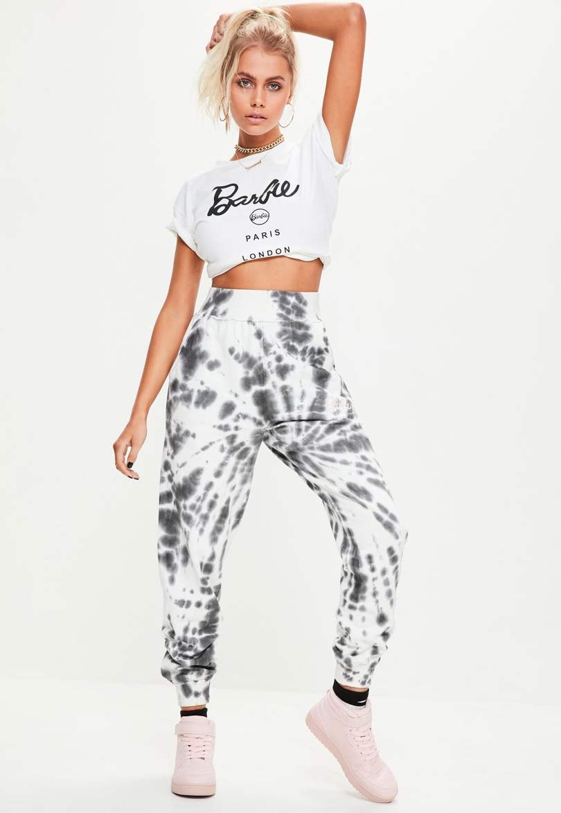Launching July 13, the BarbiexMissguided collection inspired by the famous doll, offers fans a causal leisurewear range featuring black, white, pink and camo print pieces, as well as fun slogans such as “Bye Ken”.