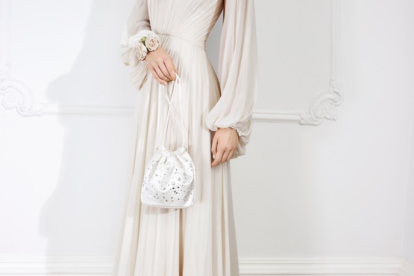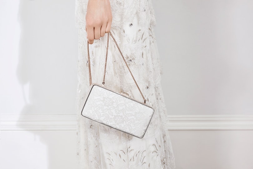 The collaboration also offers matching bag styles, in an array of fabrics, including lace and shimmering box clutches, standout pieces are the ‘Brigitte’ vintage-inspired embellished satin pouch and the ‘Sissi’ grosgrain structured clutch with pearl edging.