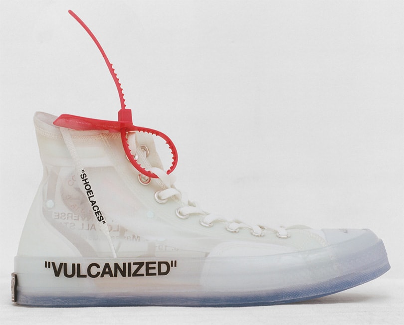 Abloh worked with models including the classic Air Jordan 1, Air Max 90, Air Max 97, Blazer, Hyperdunk and Air Force 1. Along with newer designs: AirVaporMax, Zoom VaporFly, Air Presto and also the iconic Converse (owned by Nike) Chuck Taylor All-Stars, creating his own reconstructed designs to highlight the importance of the shoes.