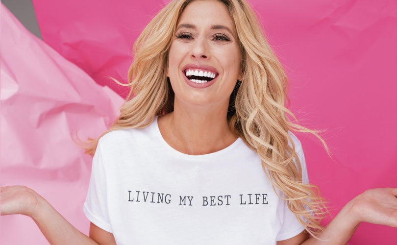 The Loose Women’s presenter is also raising money for charity with her 4 pounds ‘Living My Best Life’ T-shirt, as 20 percent of profits from the sale of the T-shirt will go to support the work of the NSPCC and ISPCC in the fight against bullying.
