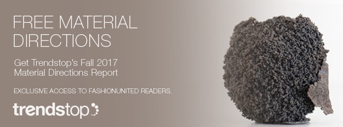 FashionUnited readers can get free access to Trendstop's Fall/Winter 2017-18 Material Directions report, an essential guide to the season's material innovations direct from the catwalks. Simply click here to receive your complimentary report.