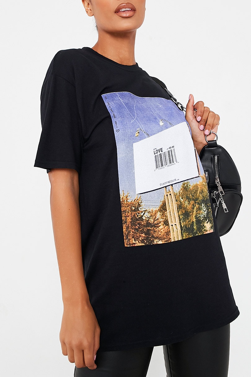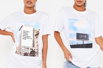 The T-shirts, which come in oversized silhouettes, feature black and white designs and are priced 10 pounds each.