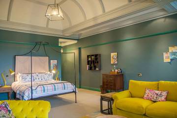 The spacious suite spans over 50 square feet and offers views over Ullswater and the surrounding fells, and features colourful Joules additions, including a sofa and armchair, bedding, kitchenware, flasks and a radio. In addition, the walls and soft furnishings have been finished with a palette of greens, soft grey and striking flashes of mustard yellow, incorporating the bold use of colour that Joules is known for.