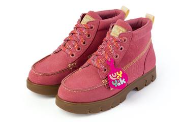 The shoe combines the classic Kickers boot with classic Lucy and Yak style and is vegan-friendly, crafted from organic canvas and finished with a lining created from recycled materials.
