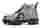Kickers mid-height boot the Kizziie Hi has been transformed using a monochrome squiggle graphic set against the Kickers trademark chunky sole, while the Kizzie Derby in black leather has been finished off with Stewart’s iconic heart graphic fleurette and a street-art inspired kick to the fleurette.