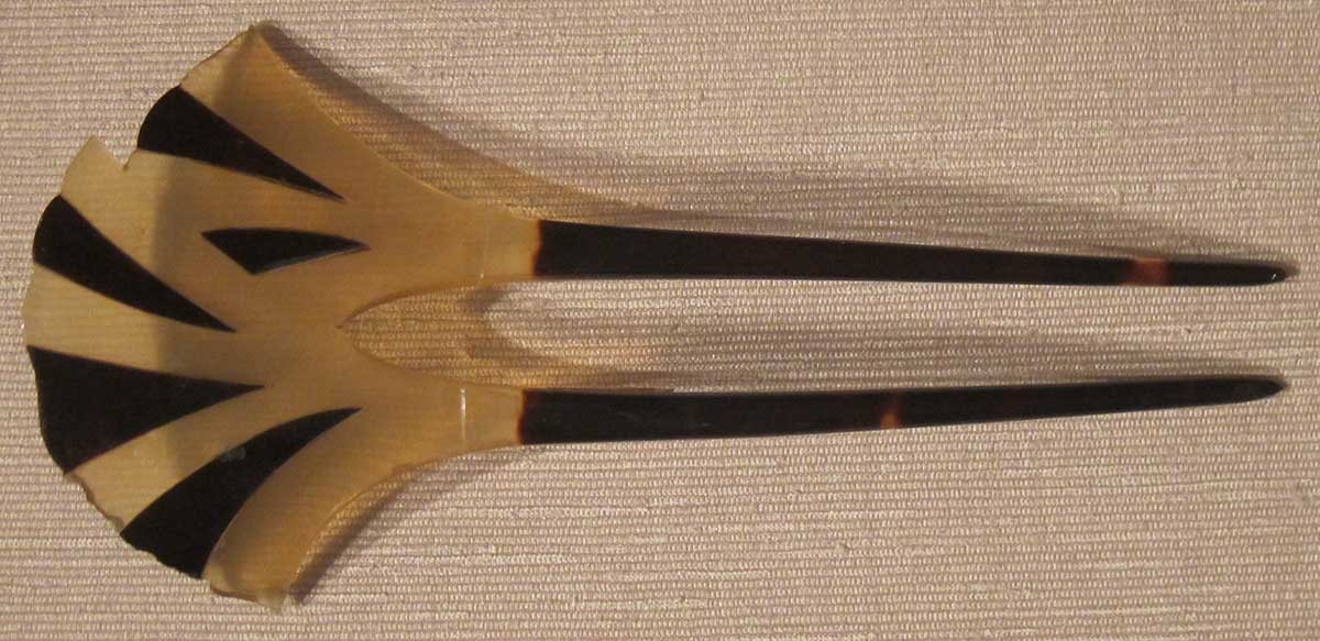 Images by Wikimedia Commons: Two skeletons dressed as lady and gentleman. Etching, 1862. Lettering: "The Arsenic Waltz" "The new Dance of Death. (Dedicated to the Green Wreath and Dress-Mongers.)"Iconographic Collections, Wellcome Images Library reference: ICV No 42815, Photo number: V0042226, http://catalogue.wellcomelibrary.org/record=b1194600; A postcard (circa 1911) depicting a man and a women dressed in the fashion of the era, uploaded to Wikimedia 6 November, 2004, by Tragicsomething, author Uncredited, currently Infrogmation, 8 June 2008. Ornamental Japanese hair pin, tortoiseshell, Edo or Taishō, Honolulu Museum of Art, author Hiart.