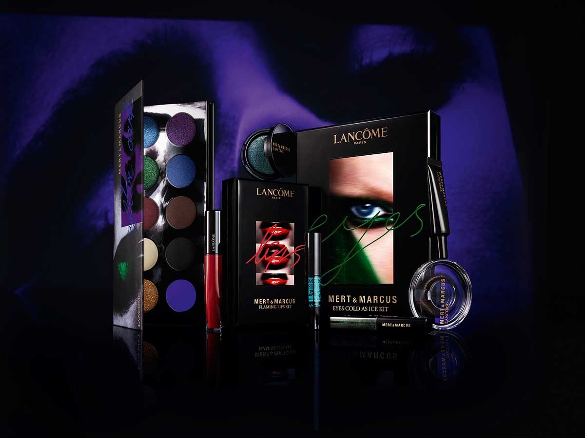 The Lancôme x Mert and Marcus After Dark Collection includes an ‘Eyes Cold as Ice Kit' that features a liquid shadow, a glittery topper, flared cat-eye lashes and Monsieur Big Waterproof Mascara in the shades Green 01 and Blue 02.