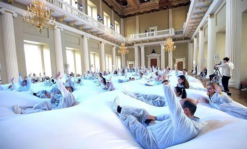 "You see how people behave when they sink into the Chubby Cloud — it's quite natural — and I wanted to do something where they could come and be playful. And you're quite porous when you're lying there, so you are open to the art and you're open to listening — and hopefully open to knowing more about us."